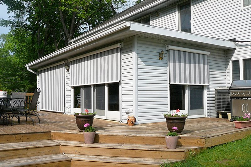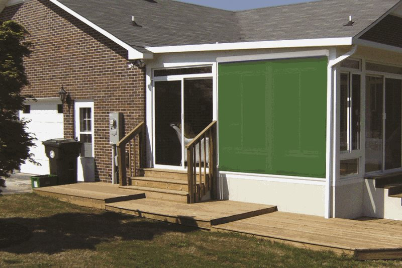 - Solar Shade SERIES II – The fabric travels down a track with a zipper design to completely close off your porch or patio from insects.